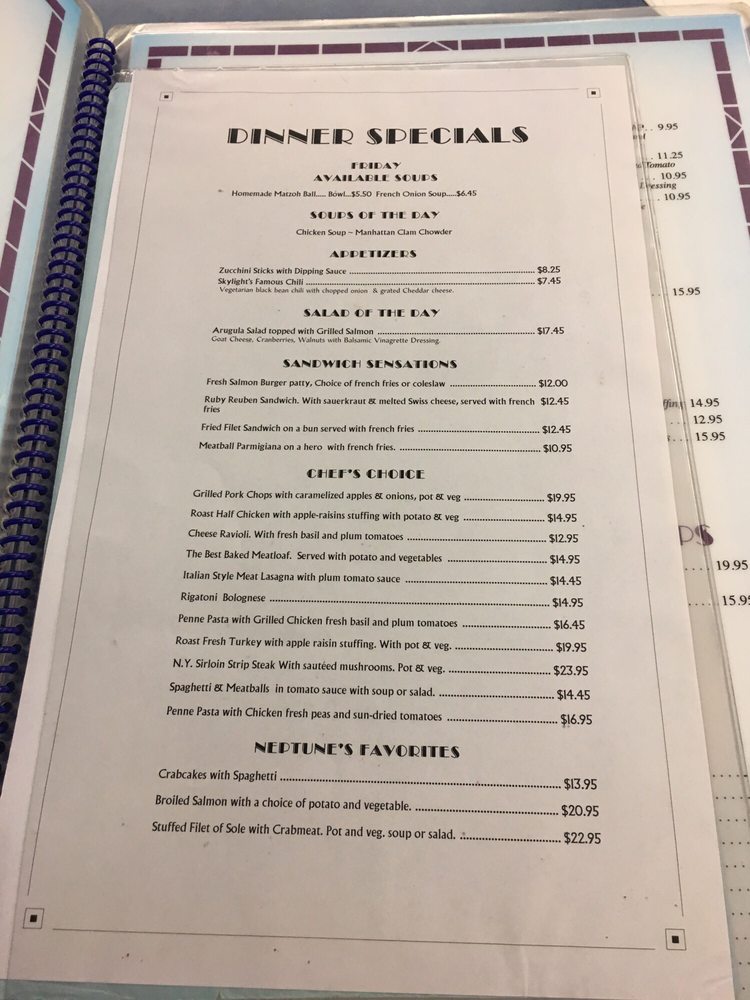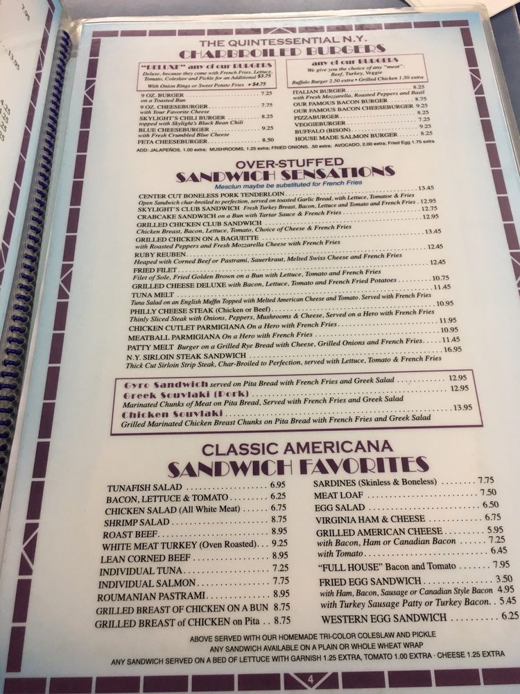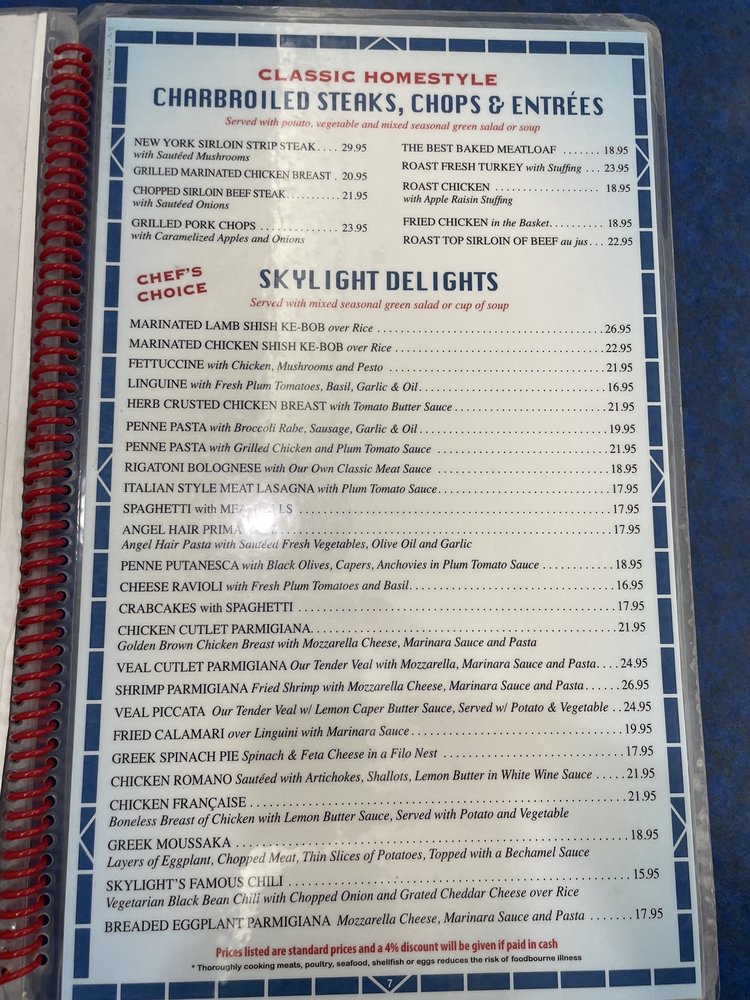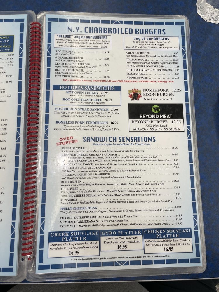 Skylight Diner Menu (Update 2025)